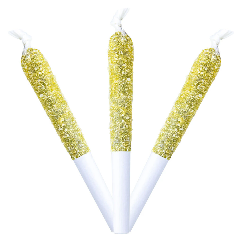 Max 60's triple diamond infused pre-rolls in Blue Lemonade are infused with potent liquid diamonds for smoothness and then coated on the outside with a layer of solid crushed diamonds. These pre-rolls bring the sweet and tangy flavour of blue lemonade with a layered potency.