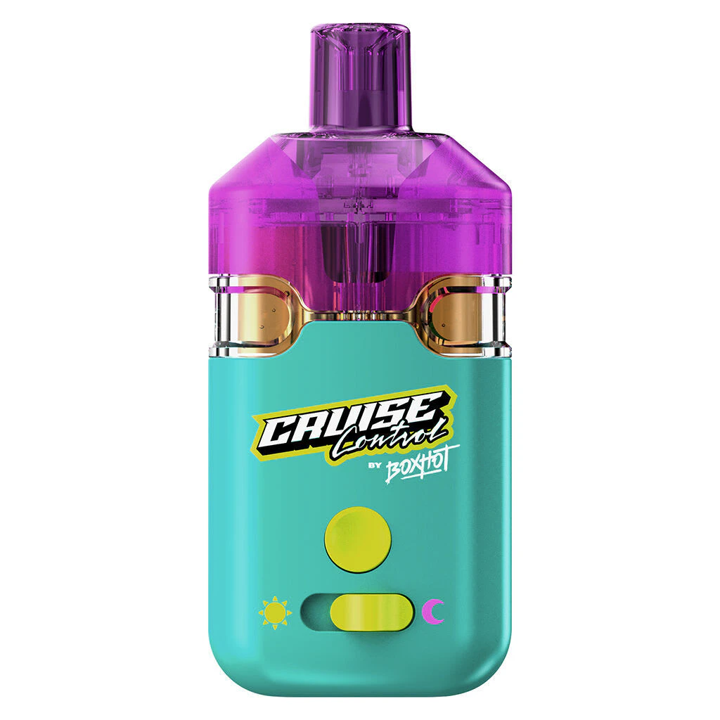 Slide over and dial in your experience with this THCV:CBN dual device that is USB-C rechargeable and ready to rip. Shine bright with a supercharged sativa surging with explosive citrus flavour and then move to the moon with an indica that hits you with a deep grape and blueberry flavour from a custom blend of botanical terpenes. The Cruise Control Day + Night Dual 2.0 g all-in-one vape offers the best of both worlds, with Formula-V at 230 mg THCV, 350 mg THC, and 340 mg CBD and Couch Lock Kush at 350mg THC, 300mg CBD, and 150mg of CBN the perfect cannabinoid stack to last you from sunrise to sunset. Slide to the sunny side for THCV and cruise over to the moon for your CBN or max out in the middle if you are feeling indecisive. Have your vape and smoke it too.