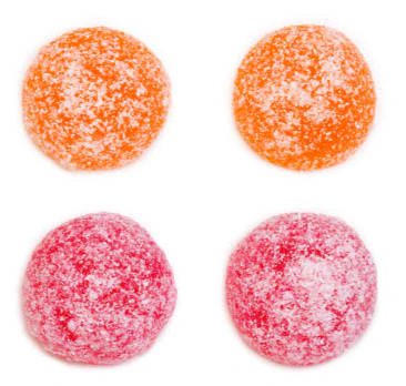 Sour Cherry & Sour Peach Live Resin Soft Chews by San Rafael 71 is a 4-pack of 2x Sour Cherry and 2x Sour Peach flavoured soft chews each infused with pure and premium Pink Kush Live Resin extract. Soft and chewy, every soft chew comes dusted in tangy crystals delivering sour flavour with minimal cannabis aftertaste. Our live resin is made from fresh frozen cannabis flower using a closed-loop hydrocarbon extraction system designed to maximize cannabinoid and terpene content.
